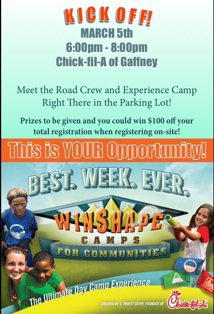 Winshape Camps Gaffney SC Kick-Off Event is THIS THURSDAY MARCH 5TH!